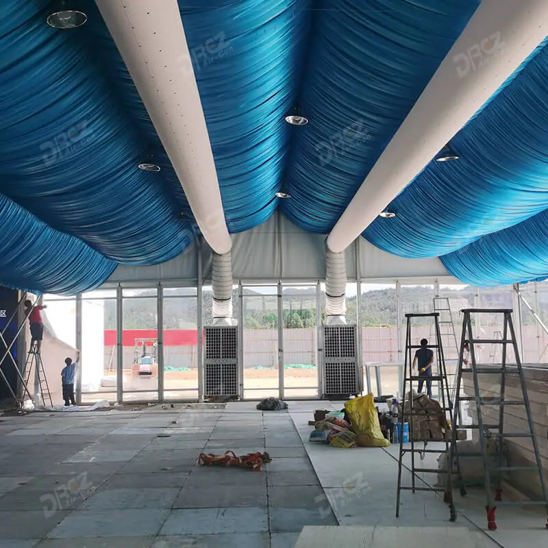 Специальный кондиционер для гигантской палатки. Не только удобная установка, меньше использование рабочей силы, но и низкий уровень шума, и нет необходимости добавлять воду. Сотрудничество с палаткой является самым большим преимуществом этого оборудования.